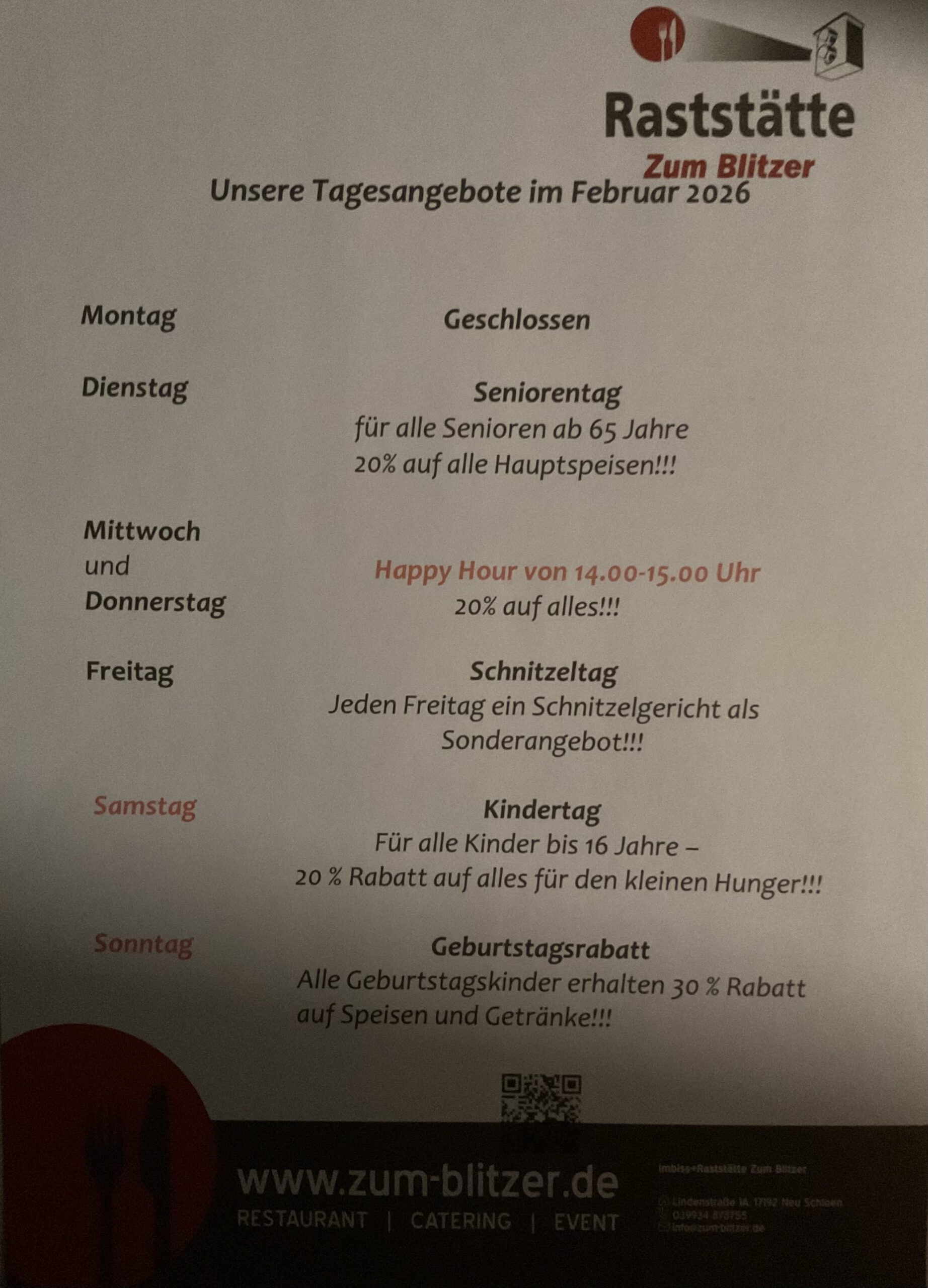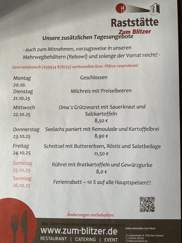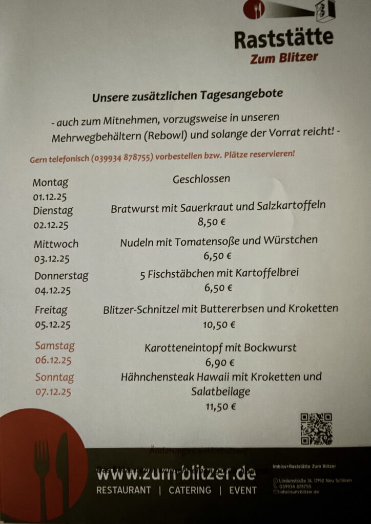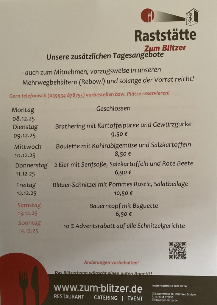 Imbiss+Raststätte Zum Blitzer | Lindenstraße 1A | 17192 Neu Schloen